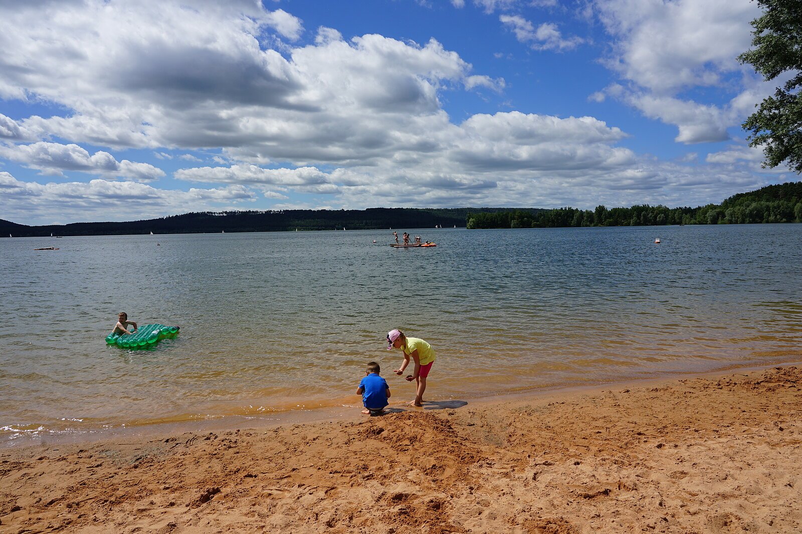 Mit Sandstrand – am Nordufer des Großen Brombachsees.