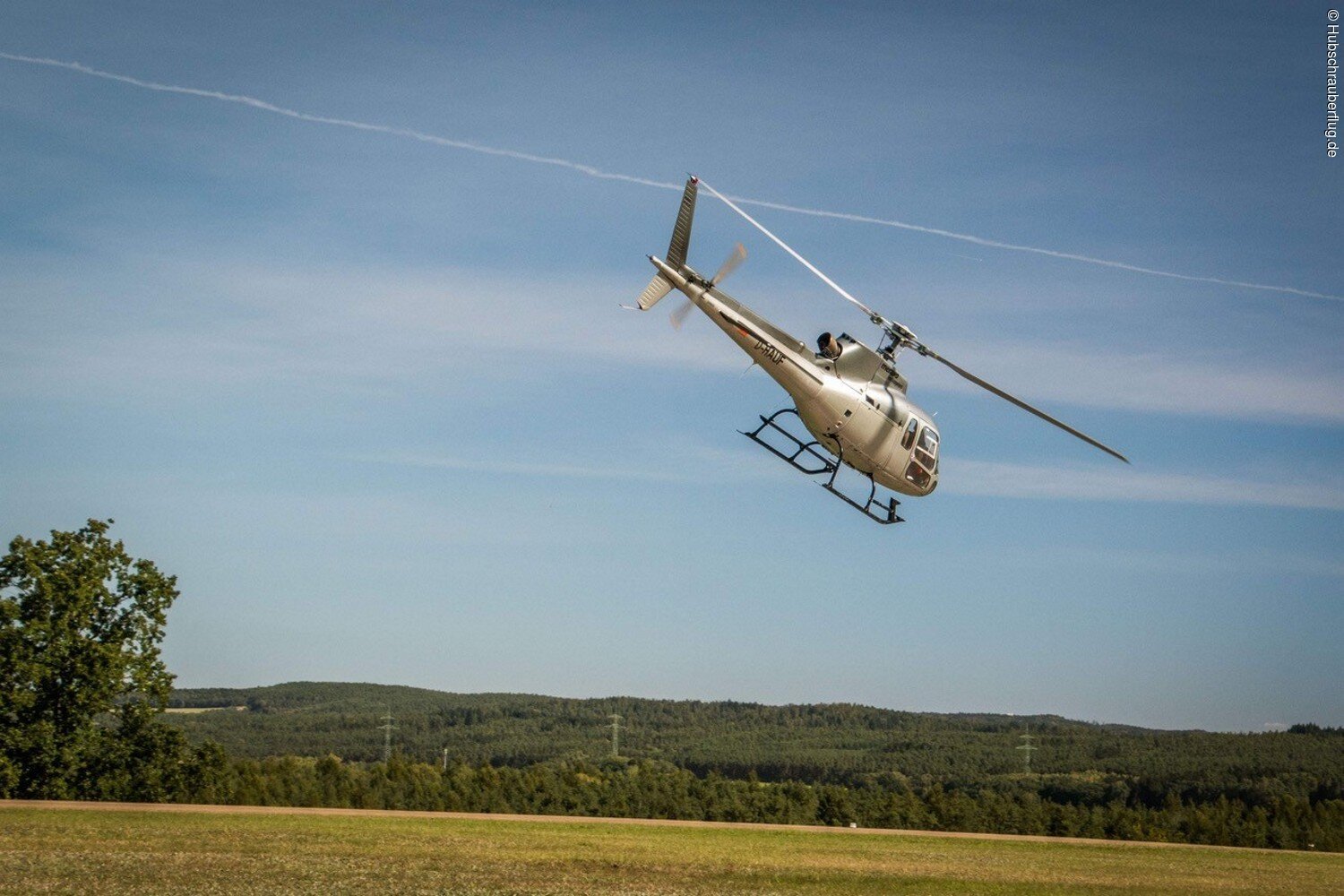 Wir fliegen mit einem Turbinenhelikopter vom Typ Eurocopter AS350 (Airbushelicopter H125) der für bis zu 5 Passagiere Platz bietet, von allen Plätzen eine eine gute Aussicht verspricht und von einem lizenzierten Luftfahrtunternehmen betrieben wird.