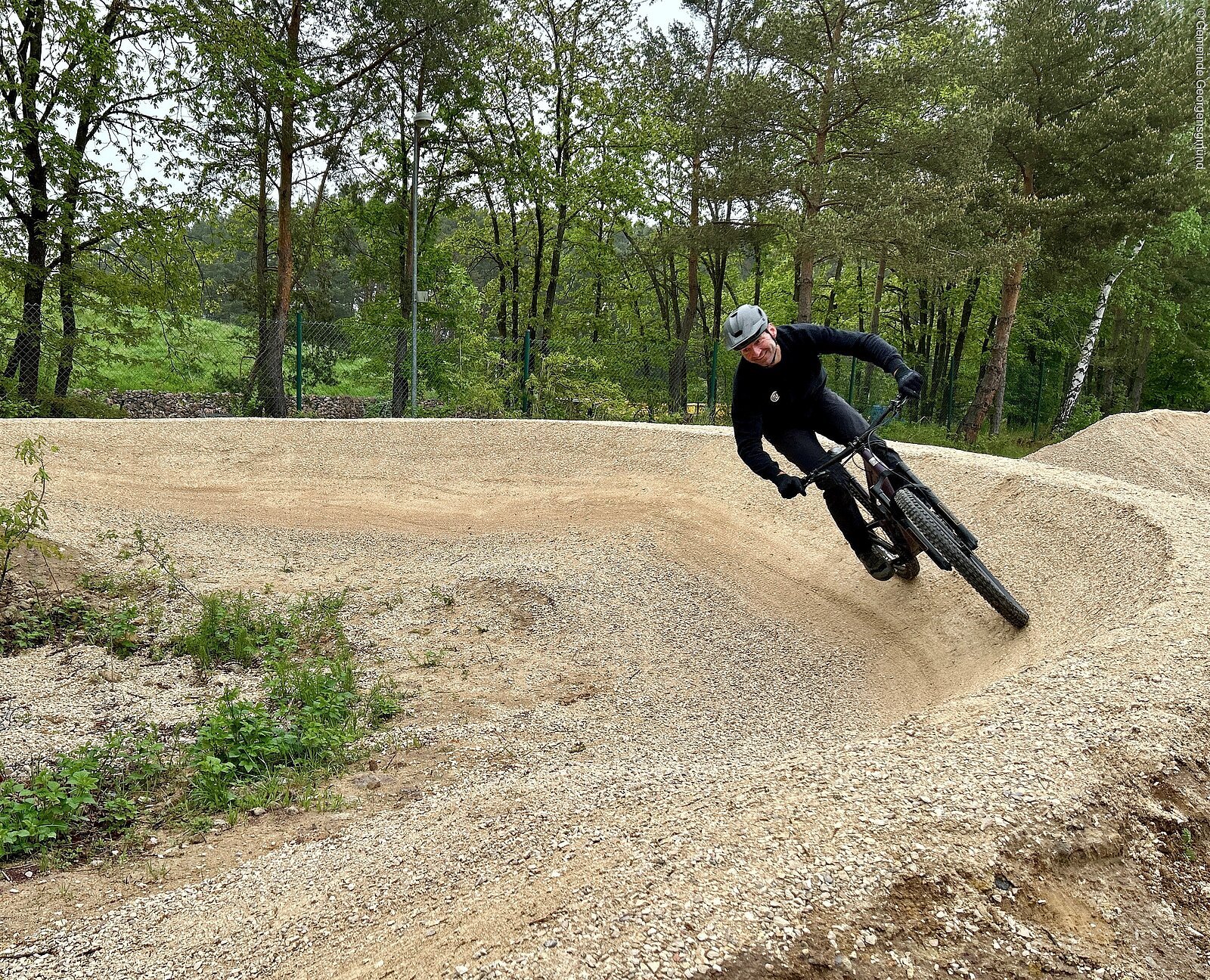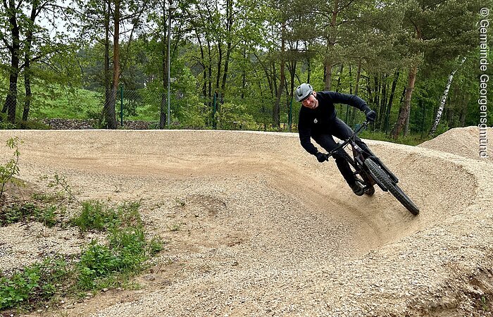 Bikepark mit Steilwandkurven, Sprungschanzen und Wellen, Pavillon mit Sitzmöglichkeiten