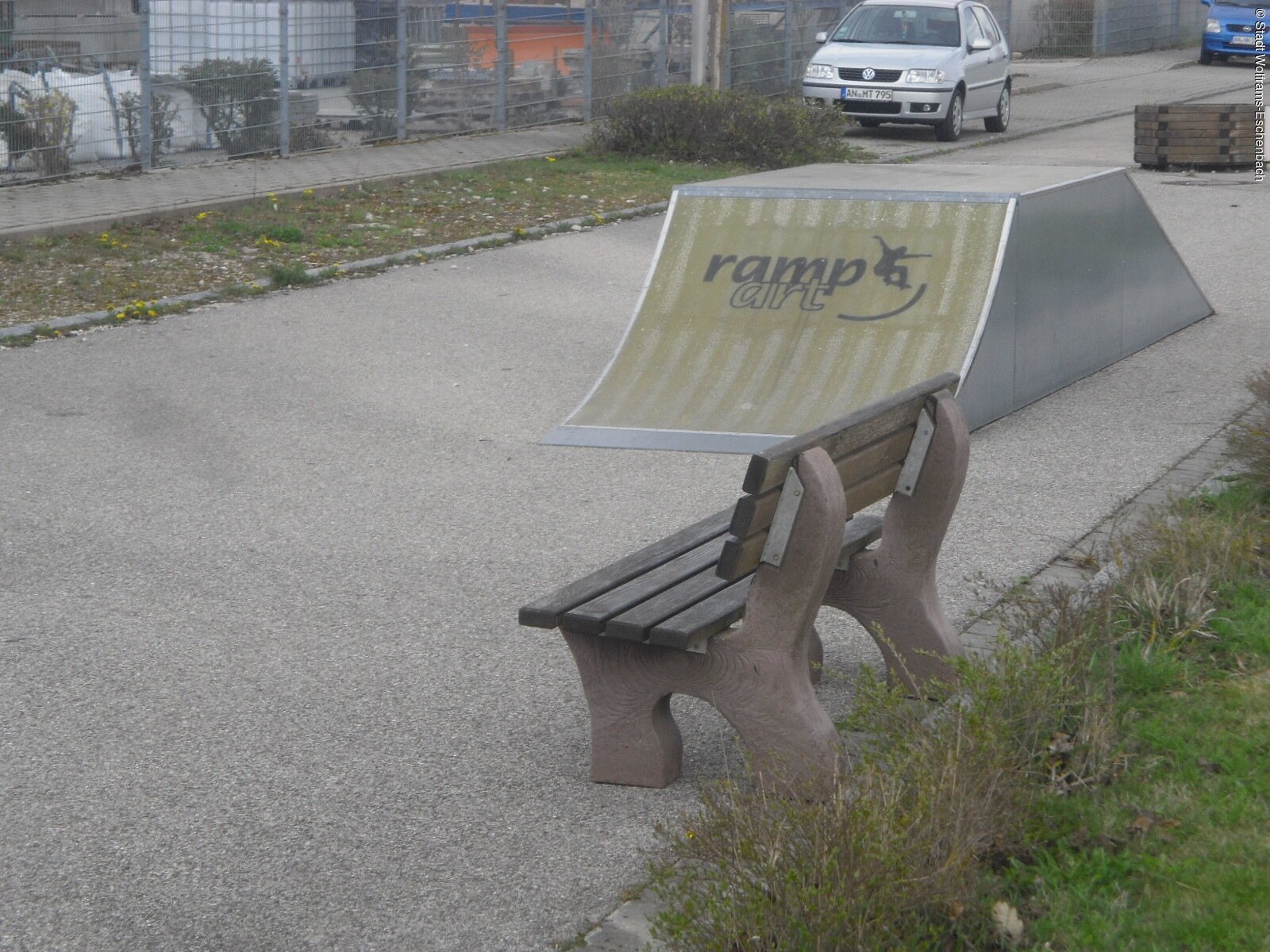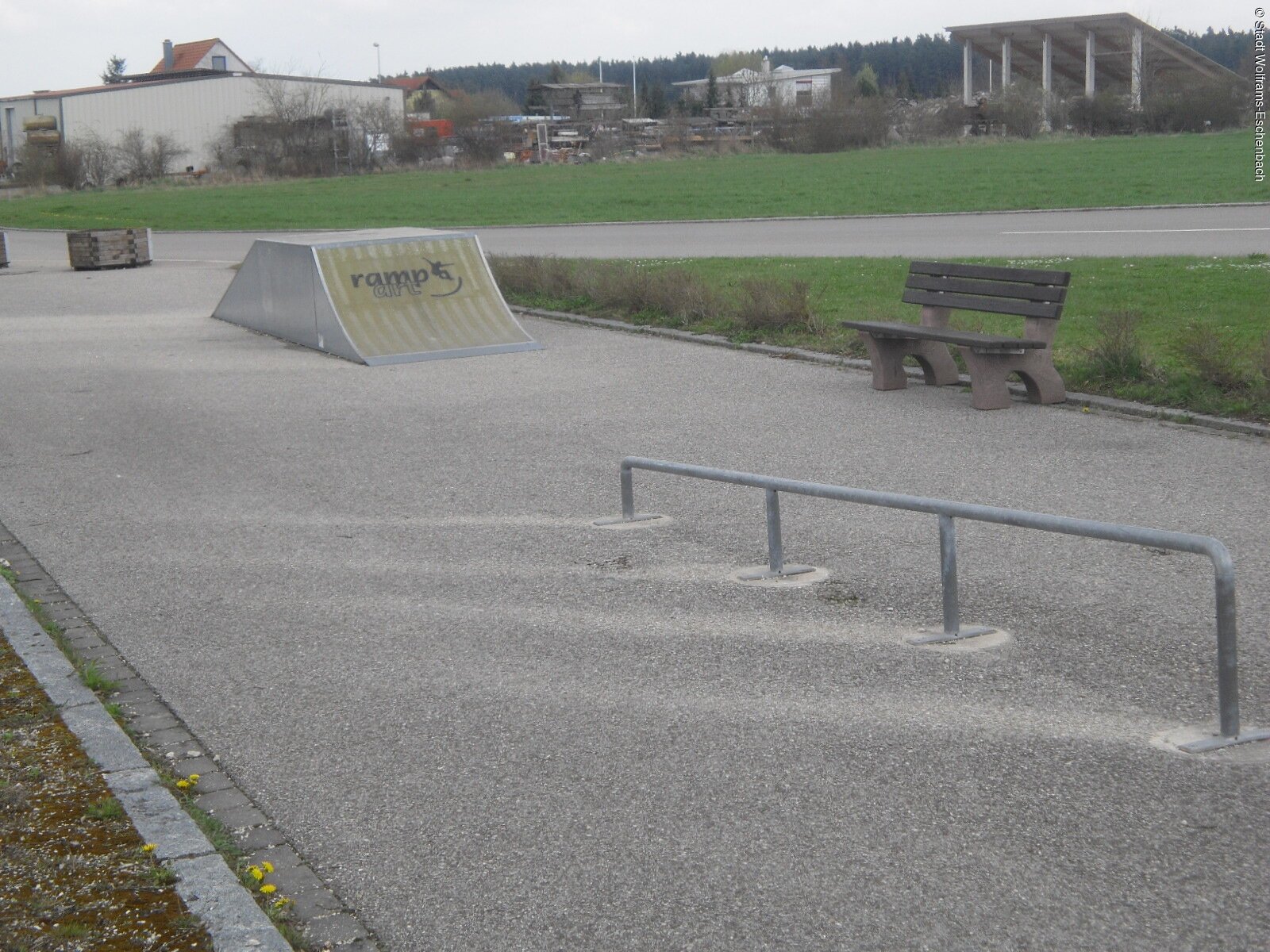 Die kleine Skateanlage befindet sich in der Ludwig-Erhard-Straße und ist für alle Jugendliche geeignet, die sich etwas mehr trauen. die Skaterrampe und Grindestange sind für Skater und BMX-Fahrer geeignet.