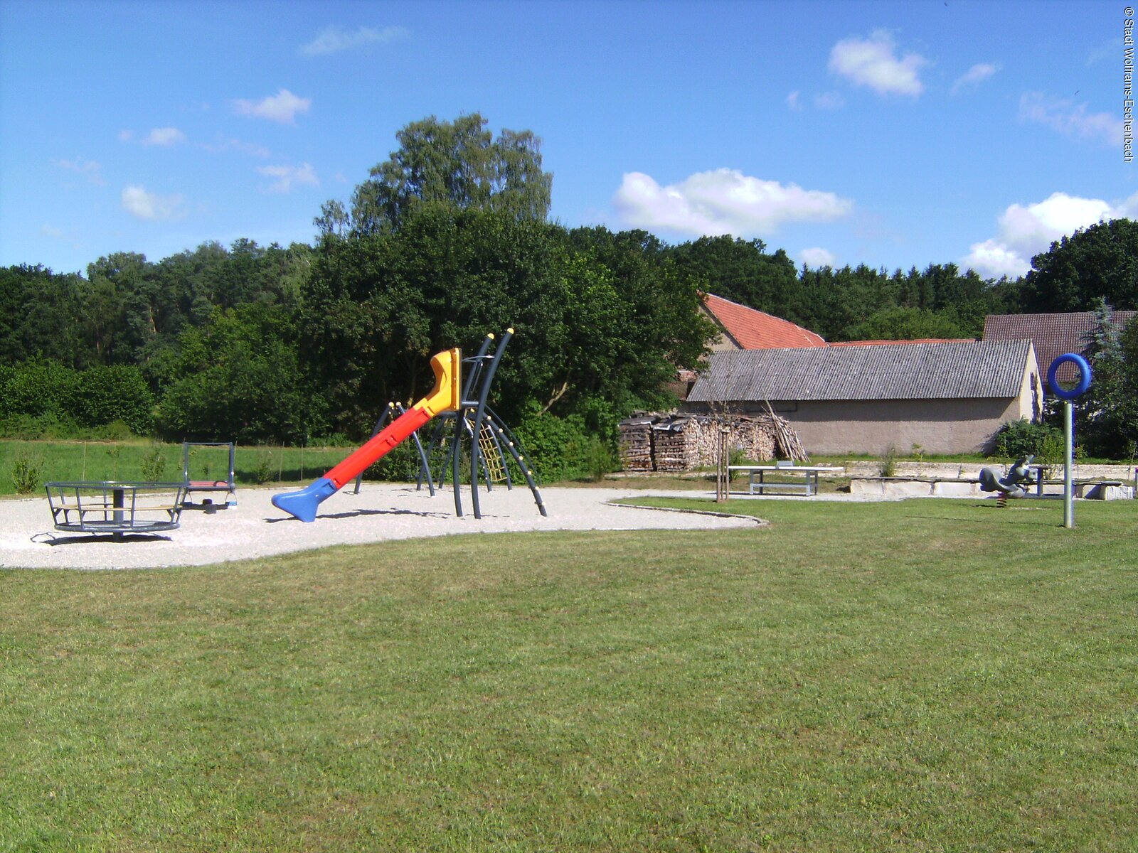 Doch nicht nur für die Fußballfans ist dieser Platz ein Traum, denn neben dem Bolzplatz befindet sich ein kinderfreundlicher Spielplatz, bei diesen die Kinder mit einer Rutsche, Sitzkarussell, Schaukel mit Klettergerüst, Federtier, Reck, Wippe, Tischtennisplatte, Wurfkreis und einer Sitzgruppe viel Spaß erleben können.