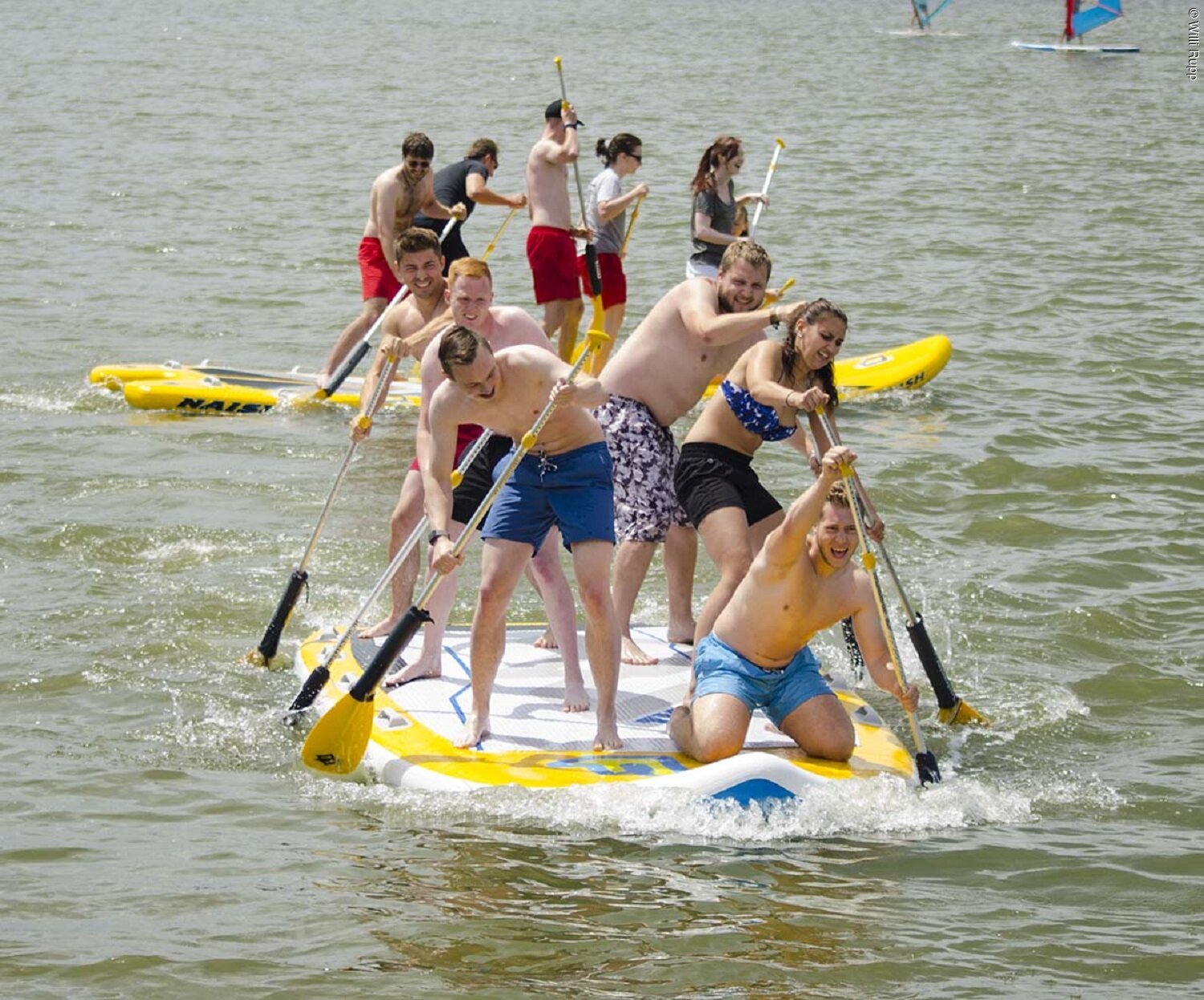 Kurse in der neuen Trendsportart Stand-Up-Paddling, kurz SUP, finden immer Samstag und Sonntag um 11:00 Uhr statt, sowie nach Absprache. Termine für SUP-Yoga finden sie im Newsticker auf unserer Website.