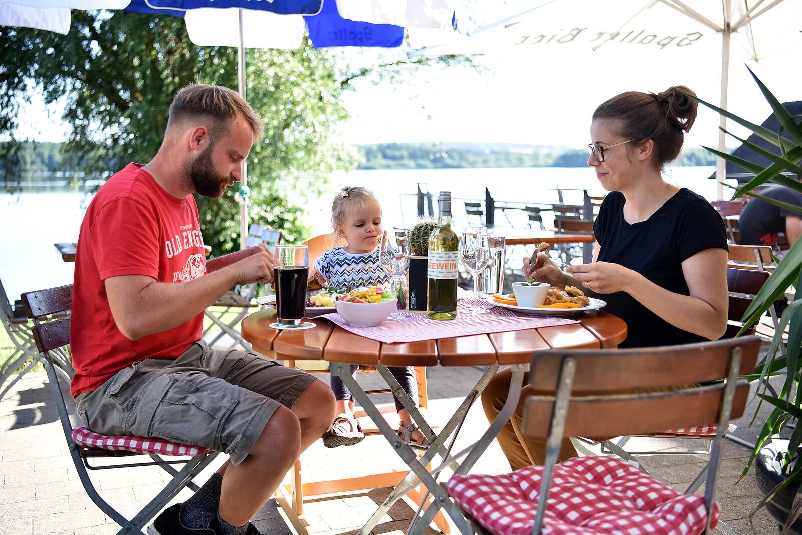 Er zählt zu den Top 20 der schönsten Biergärten Frankens: der Gastgarten der "Seeklause", direkt am Damm zwischem Großem und Kleinem Brombachsee gelegen. Die Gäste schätzen die ruhige Lage abseits des Autoverkehrs, den Kinderspielplatz und die hausgemachten Spezialitäten - ob als Snack für den kleinen Hunger (gerne auch zum Mitnehmen) oder beim ausgedehnten, gemütlichen Abendessen. Besonders zu empfehlen: der knusprig-luftige Kaiserschmarrn mit Apfelmus und die geräucherten Forellen aus der Region.
