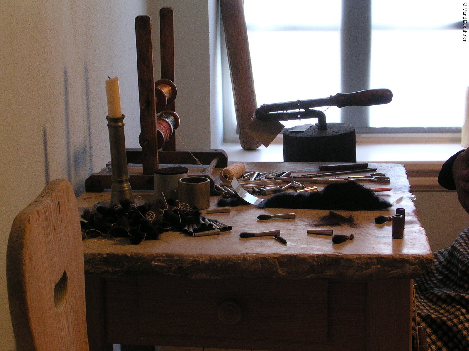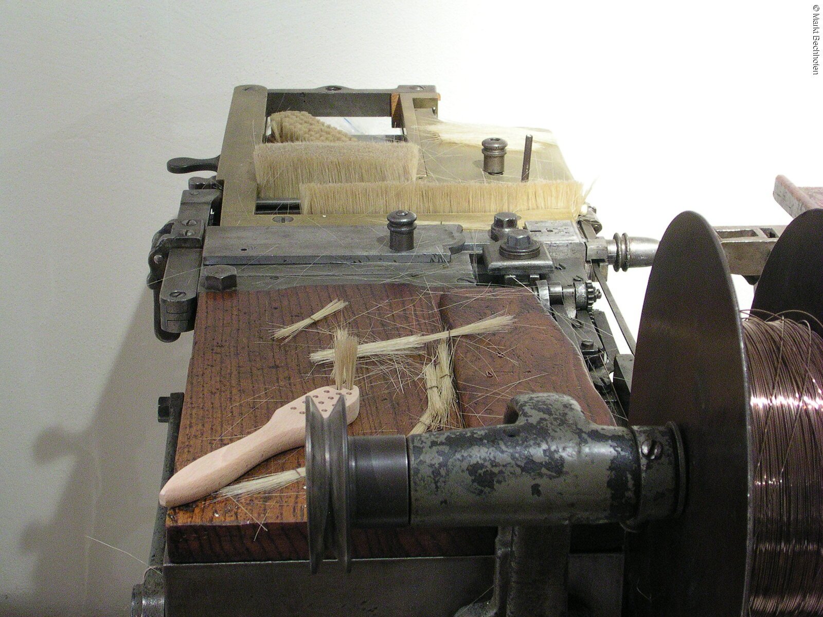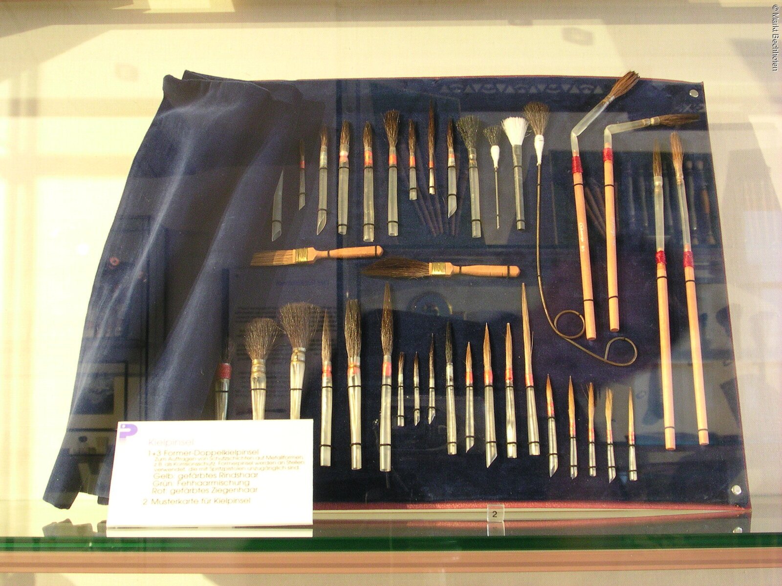 Eine umfassende Ausstellung zeigt die Herstellung der Handwerksgeräte vom Rohmaterial wie Tierhaaren oder Pflanzenfasern bis zum Endprodukt. Eine außergewöhnliche Sammlung von Firmenkatalogen illustriert den Handel und Vertrieb der Pinsel und Bürsten, während ein detailgetreu eingerichtetes Heimarbeiterzimmer die Arbeitsbedingungen der Pinsel- und Bürstenmacher veranschaulicht.