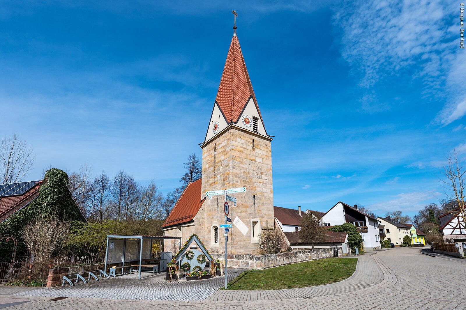 Die Filialkirche Mariä Verkündigung in Hofstetten ist ein Sandsteinquaderbau aus der Zeit der Gotik (14. Jahrhundert). Die Kirche hat einen Turm über dem quadratischen Grundriss, vier Dreiecksgiebel und einen achtseitigen Spitzturm. 1737 wurde die Kirche umgebaut und barockisiert. Der Altar mit zwei gewundenen Säulen zeigt die Figur der Muttergottes sowie Reliefs der Hl. Barbara und Hl. Katharina.