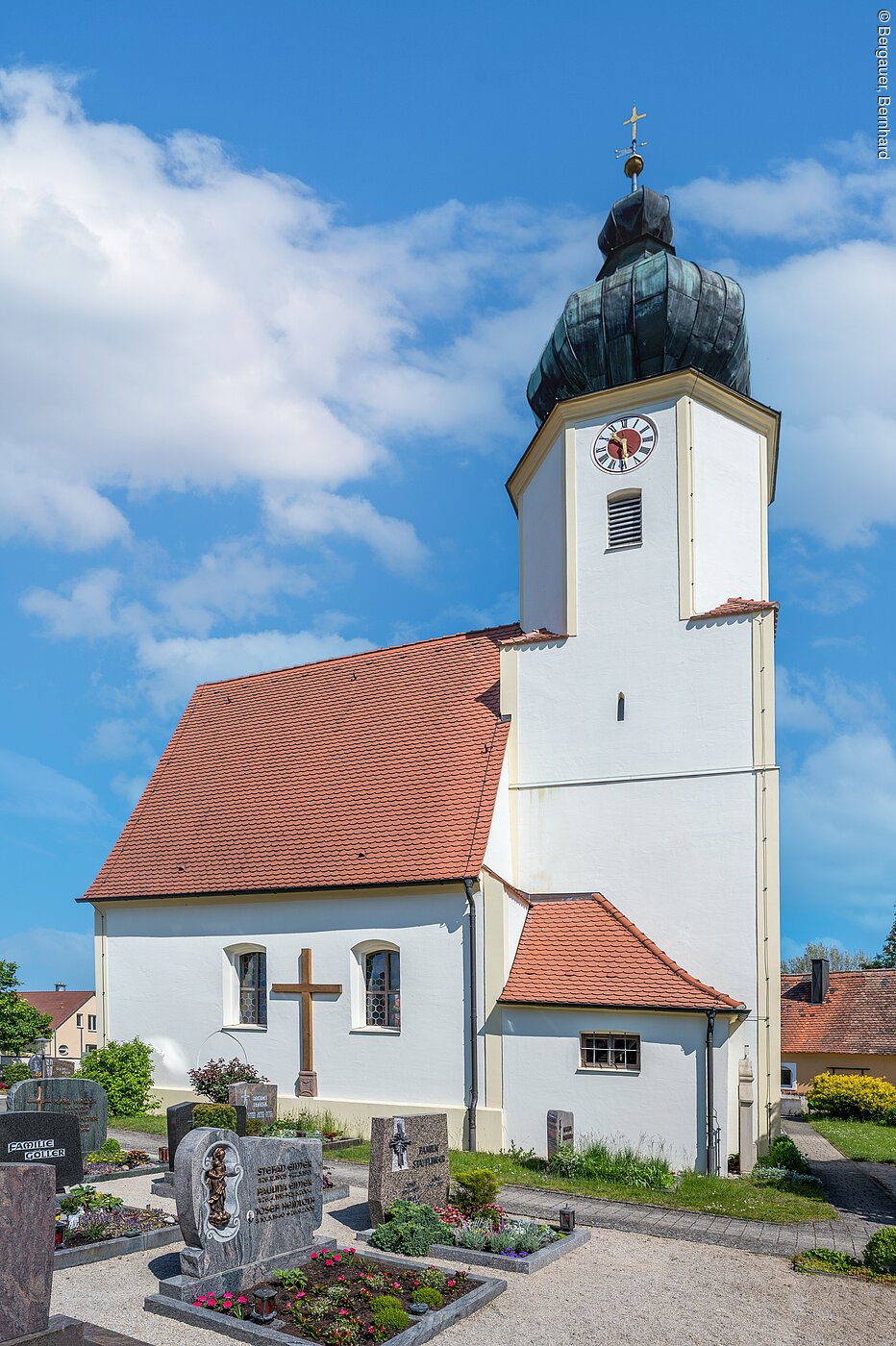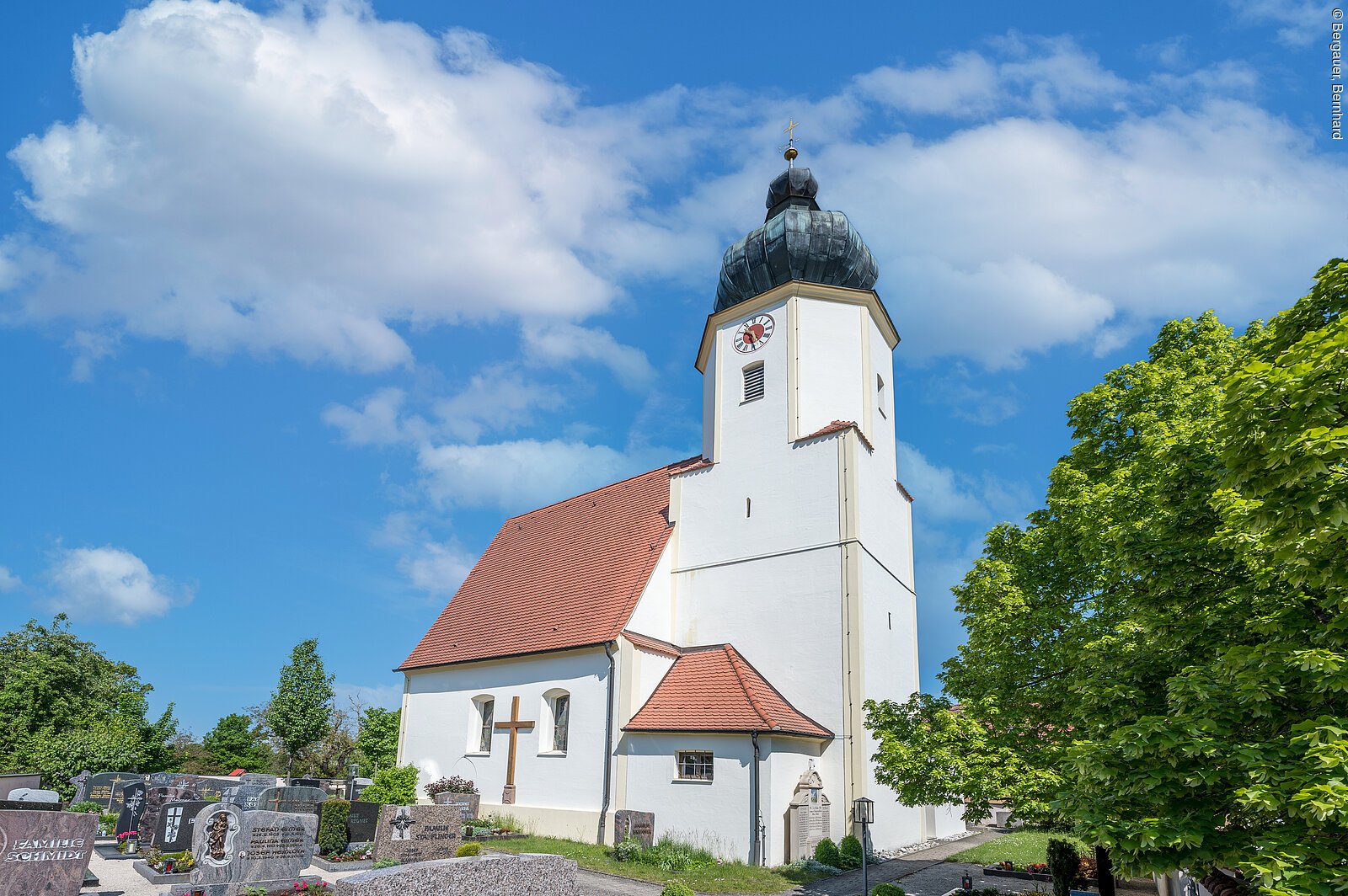 Die Filialkirche St. Hippolyt ist ein Putzbau mit Steilsatteldach und Chorturm mit oktogonalem Glockengeschoss und Zwiebelhaube, flachgedecktem Langhaus und eingezogenem Chor mit Tonnengewölbe. Im Kern ist sie romanisch, wurde jedoch um 1700 barockisiert und um 1790 erweitert.