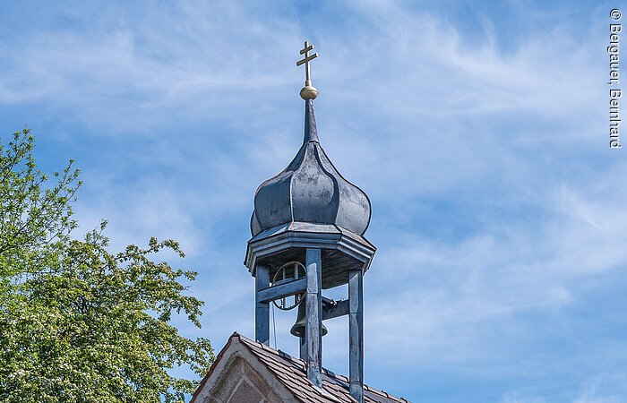 Das kleine Langhaus mit Rundbogenapsis in Sandsteinmauerwerk und mit dem Glockentürmchen über dem Dachfirst wurde von Maurermeister Kaspar Janser und dem Zimmerermeister Andreas Streb erbaut.
