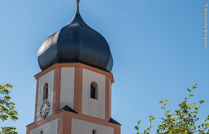 Die katholische Pfarrkirche „Mariä Geburt“ wurde 1728 unter der Leitung des neuburgischen Stadtmaurermeisters J. Boissinger im Barockstil weitgehend neu gebaut. Nur der mittelalterliche Unterbau des Chorturmes blieb erhalten.
