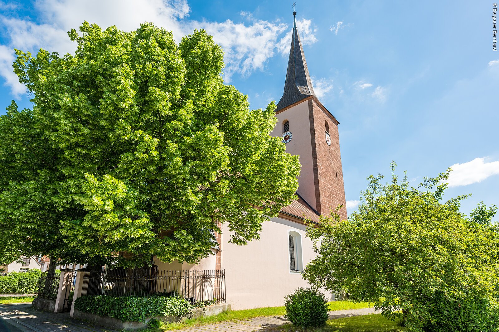 Teilweise verputzter Sandsteinquaderbau mit Walmdach und Chorturm mit Spitzhelm, flachgedecktes Langhaus mit Bandelwerkstuckaturen und eingezogener Chor mit Kreuzrippengewölbe, im Kern frühes 15. Jahrhundert, nach 1758 erweitert und barockisiert – so präsentiert sich die heutige Pfarrkirche St. Michael Gläubigen und kunsthistorisch Interessierten.