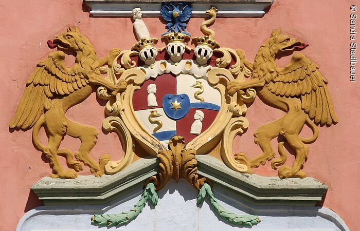 Das ortseingesessene Geschlecht der Mörlacher wird seit dem frühen 12. Jh. genannnt. Das jetzige Rokokoschlösschen wurde 1775 von Christoph Adam Carl Imhof erbaut. Ein dreistöckiges Schloss nach englischer Bauart mit 112 Fenstern und Stuckaturen vom Nürnberger Meister Johann Michael Krieger, der unter anderem die Pfarrkirche in Castell stuckiert hat. Die spätbarocke Anlage ist um einen quadratischen Vorhof gruppiert mit Herrenhaus, zweigeschossigem Putzbau mit Mansardwalmdach und mittigem Zwerchhausrisalit sowie zwei Seitenflügeln. Die fünfteilige Toreinfahrt zieren verputzte Steinpfeiler mit einem Ornament-Eisengitterzaun und -tor.