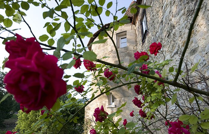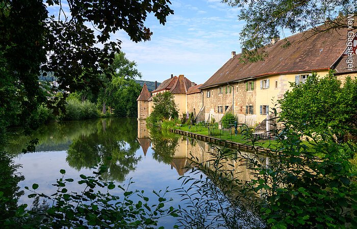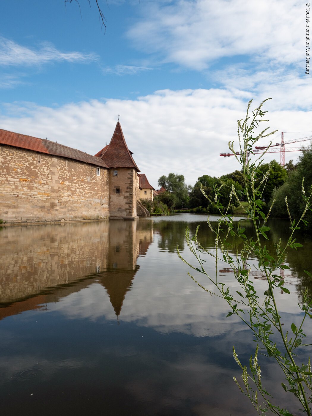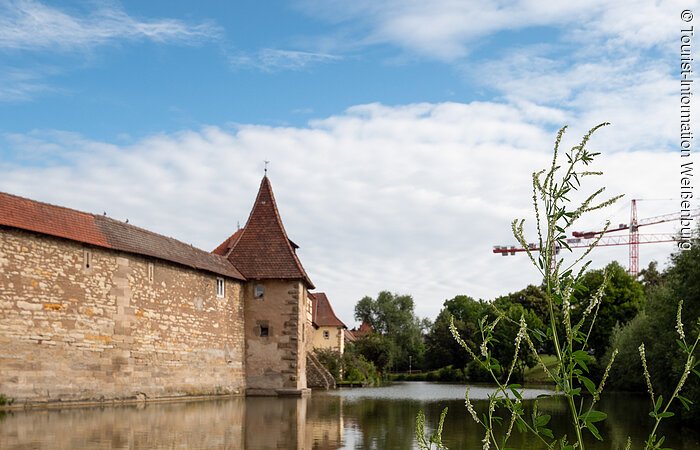 Historische Stadtmauer mit geflutetem Befestigungsgraben