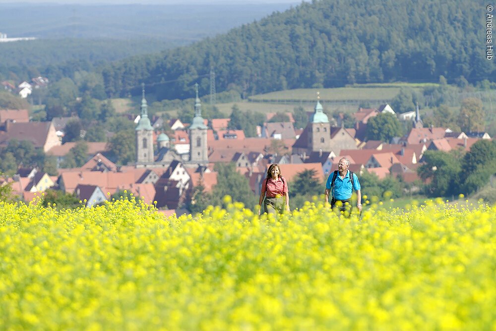 Die glitzernden Wasserlandschaften von Altmühlsee, Großem und Kleinem Brombachsee sowie dem Rothsee, Streuobstwiesen, schattige Waldgebiete und artenreiche Naturschutzgebiete, flache Ebenen mit weiten Blicken, Hopfengärten und sanftes Hügelland – die Landschaftsbilder im Fränkischen Seenland sind überraschend abwechslungsreich. Wer auf dem Rundwanderweg „Der Seenländer“ unterwegs ist, erlebt diese Landschaftsvielfalt ganz unmittelbar. Unterwegs auf der abwechslungsreichen Wandertour begegnet man aber auch kulturellen Höhepunkten, Römern, Rittern, Markgrafen und der fränkischen Gastfreundschaft: Dafür sorgen die großen und kleinen Etappenorte. Sie begeistern mit historischen Altstädten und idyllischem Dorfleben – und laden in typisch fränkischen Gasthäusern und gemütlichen Biergärten zu regionalen Spezialitäten wie original Spalter Bier oder fränkischen Bratwürsten ein.
