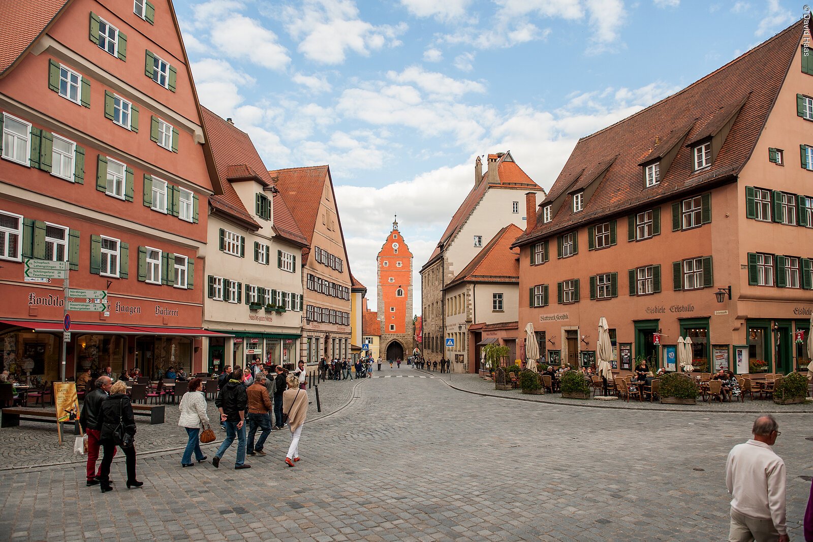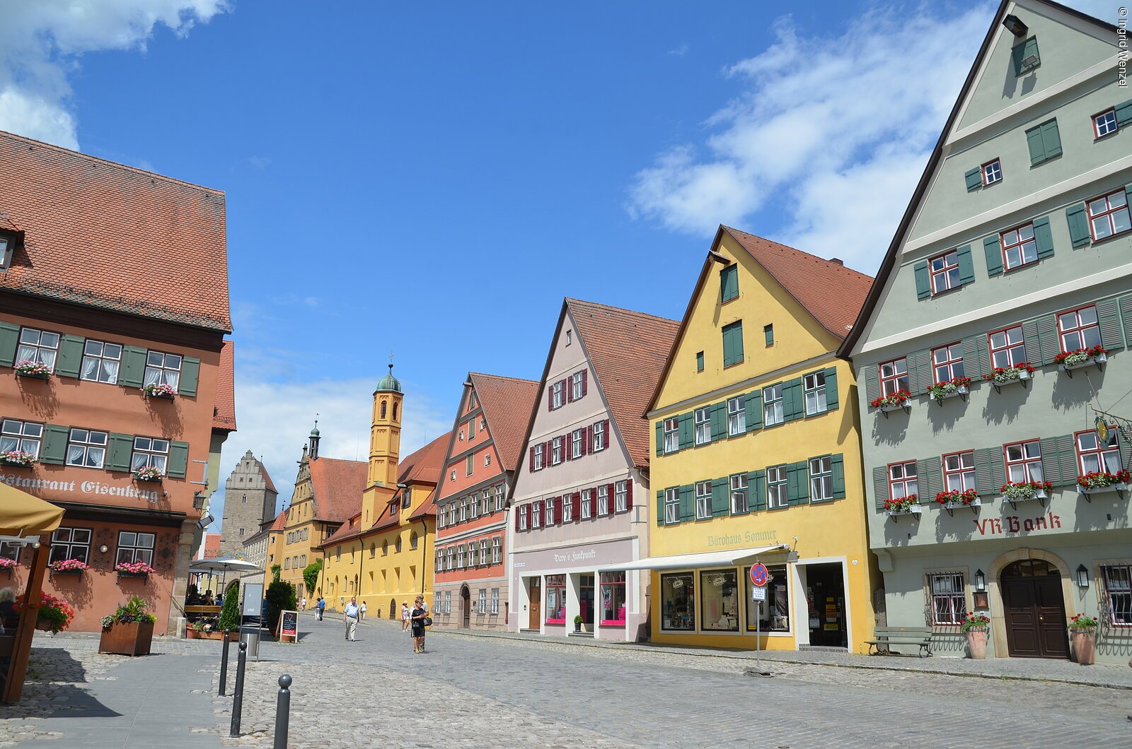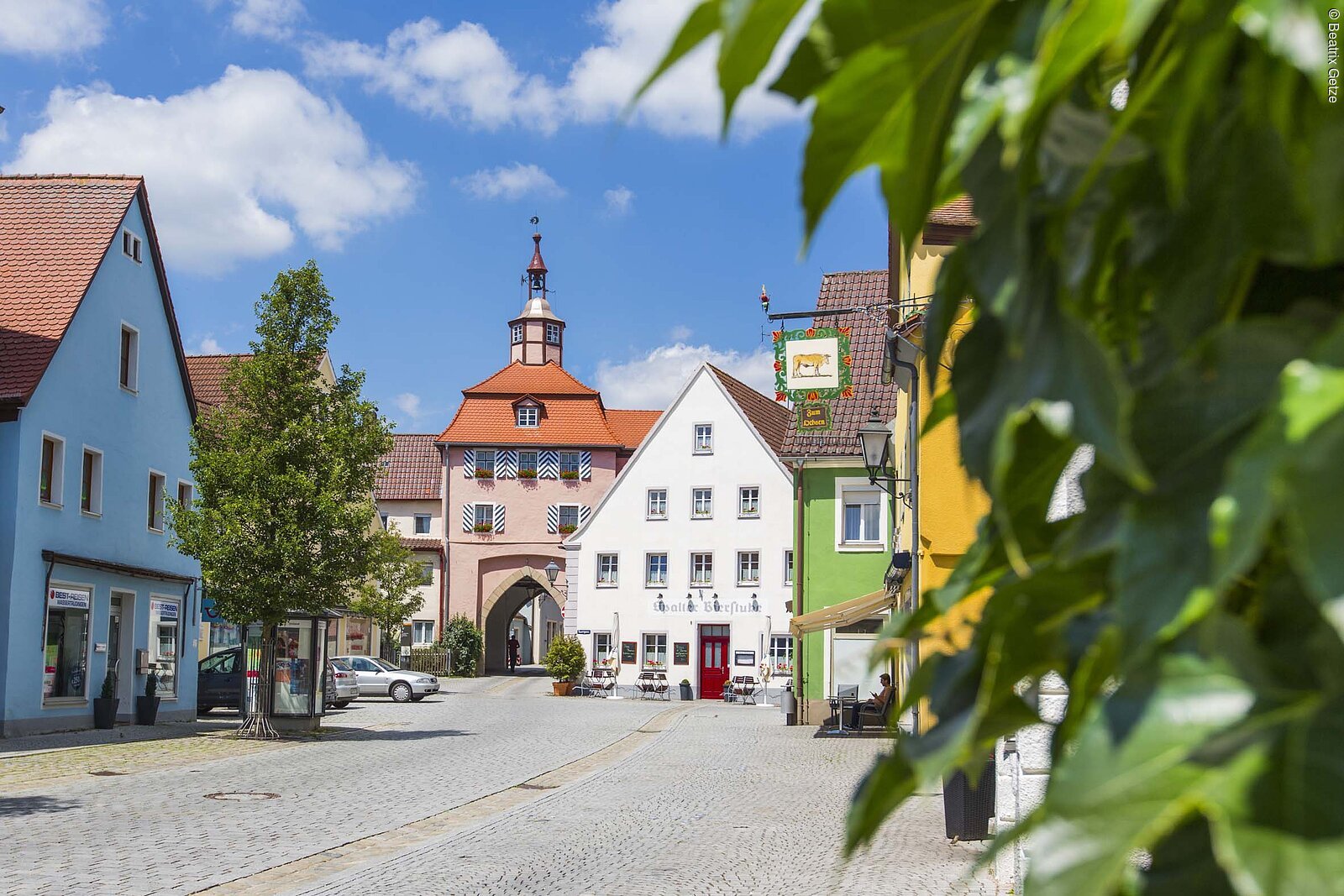 Wilburgstetten wechselt der Weg mehrmals die Flussseite, bevor die mittelalterliche Silhouette der Stadt Dinkelsbühl vor den Radlern auftaucht. Nicht nur der Fluss, auch zahlreiche Fischteiche glitzern hier in der Sonne und machen Appetit auf heimische Fischspezialitäten.