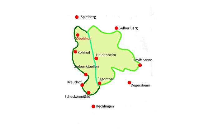 - Man geht den Bogen Ost und kürzt über die Sehne durch Heidenheim ab. Auch das ist eine anspruchsvolle Runde mit einer Länge von 20,5 Kilometern und 500 Höhenmetern. Die reine Gehzeit beträgt hier knapp 6 Stunden. Einkehrmöglichkeiten finden wir in Heidenheim, hier gibt es auch einen Bäcker, einen Metzger und ein Lebensmittelgeschäft, bitte Ruhetage beachten. Als Ausgangspunkte sind der Parkplatz am Gelben Berg, an der Steinernen Rinne in Wolfsbronn oder in der Ortsmitte von Heidenheim, am Rathaus zu empfehlen.