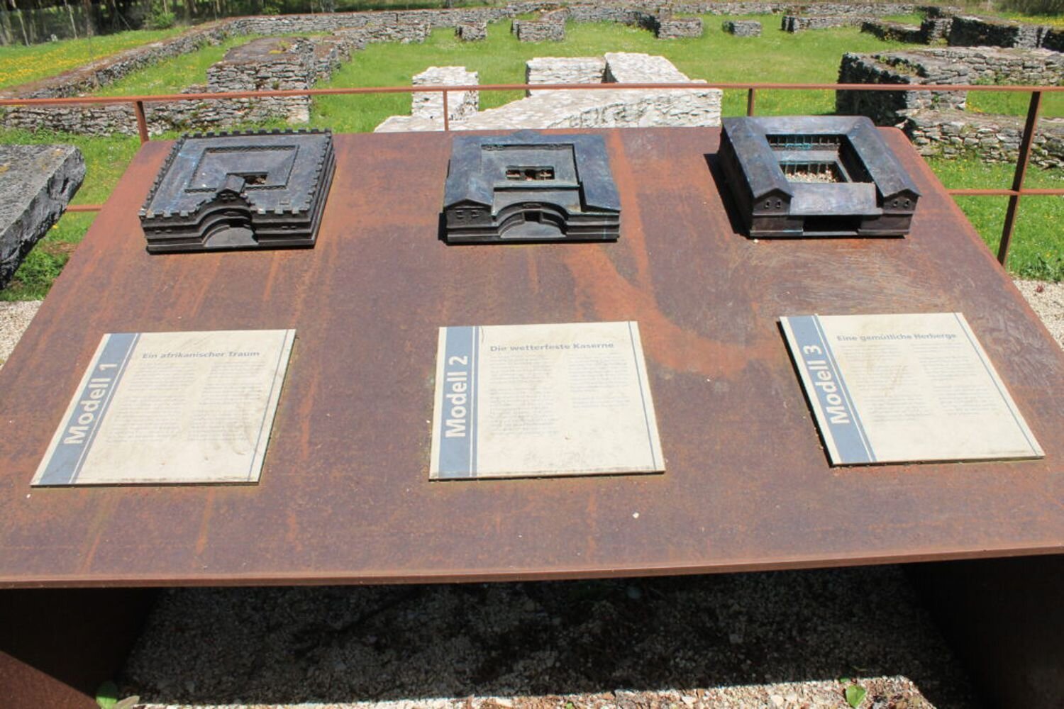 An elf Stationen lässt sich das Leben an und hinter der Grenze des römischen Weltreichs entdecken. Interaktive Stationsmodule, darunter ein Flipper, Drehwürfel und eine Blickrekonstruktion laden zum Mitmachen ein. Zusammen mit plastischen Modellen, u.a. einer Römerstraße und des Burgus, und leicht verständlichen Informationstafeln vermitteln sie auf spielerische und unterhaltsame Weise Wissen über die Römer am Limes. Sowohl Kinder als auch Erwachsene erfahren so Neues über die Antike. Pulex, ein Floh, der die römische Grenze problemlos passieren und Römer und Germanen gleichermaßen beißen kann, begleitet die Besucher als Maskottchen auf den kindgerechten Wegweisern und Stationen.