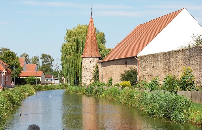 Umrahmt von einer Stadtmauer empfängt Merkendorf die Wanderer. Bekannt ist das Städtchen für